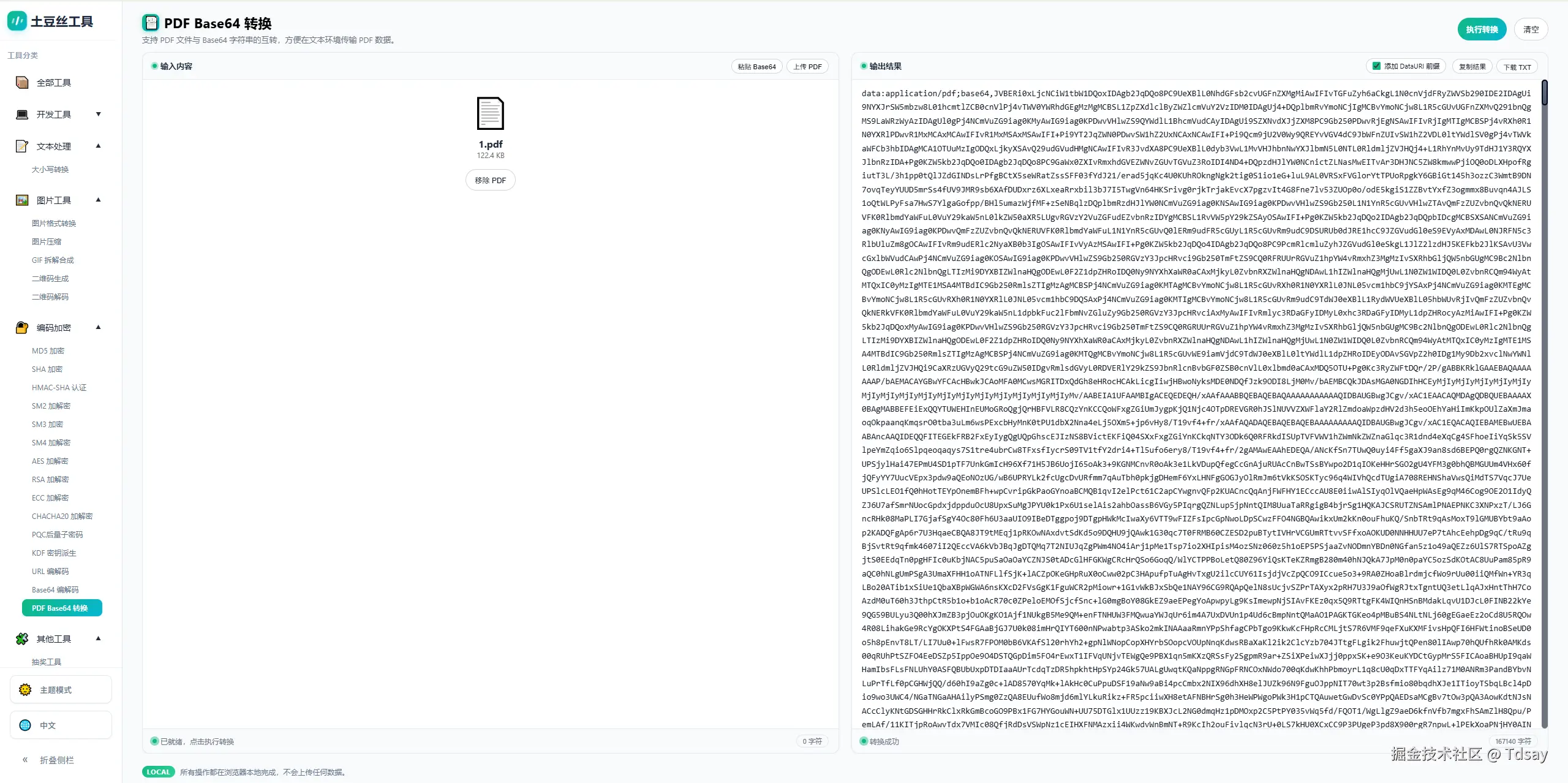 土豆丝工具提供的 PDF 与 Base64 互转页面就是这种轻量型工具。