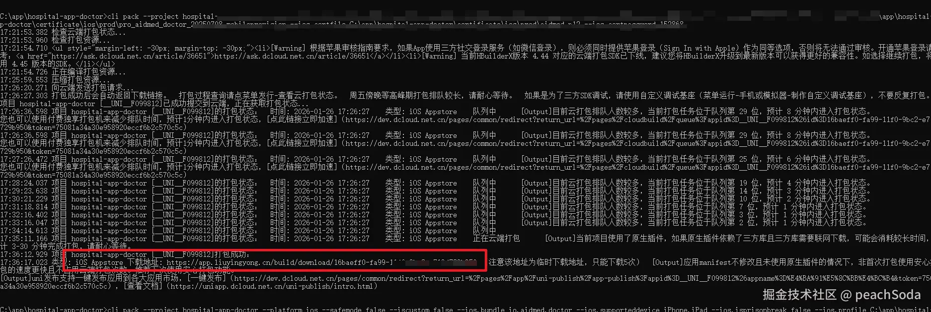 注意: cli 的配置只需要在第一次的时候需要,后续直接通过操作步骤中的命令直接打包即可,如果证书有更换,请注意及时变更命令中对应的证书路径,发版的时候记得更改环境信息和版本信息。