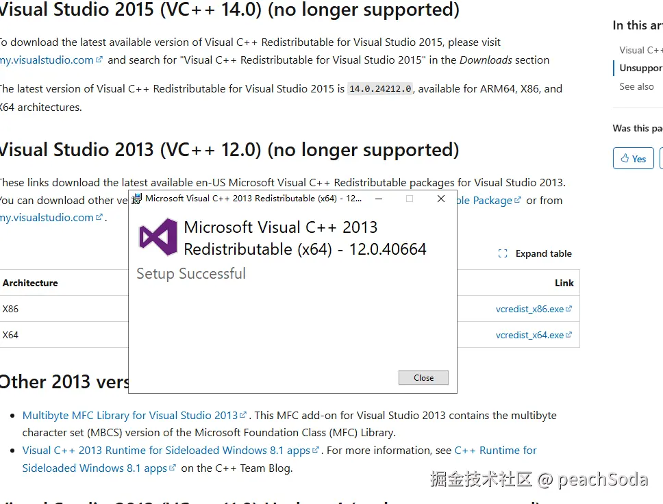 微软 Visual C++ 可再发行程序包 (Microsoft Visual C++ Redistributable):建议下载并安装 X64 和 X86 两个版本。