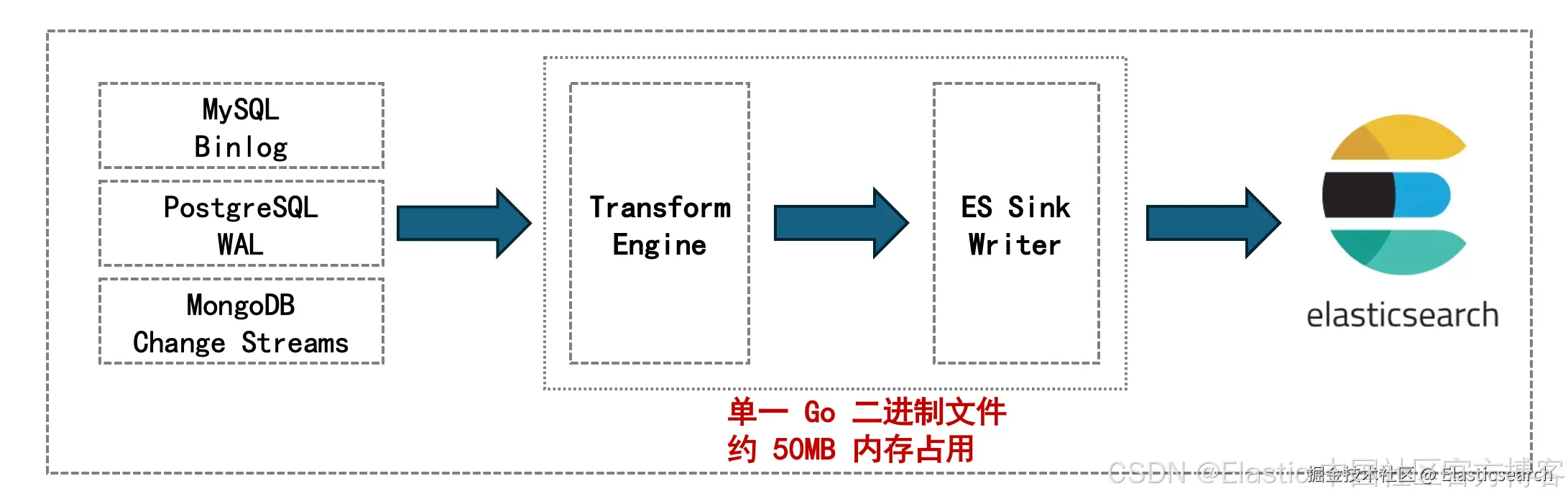 在很多团队里,Elasticsearch 早就不只是 “搜索引擎”,而是承接检索、运营分析、日志关联、实时看板和业务查询加速的重要基础设施。问题也随之而来:上游数据通常分散在 MySQL、PostgreSQL、MongoDB 等 OLTP 数据库中,如何把这些变化稳定、实时、低门槛地同步到 Elasticsearch,往往并不轻松。