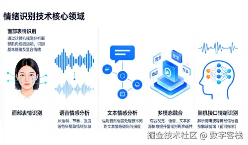 - 脑机接口情绪识别:通过解析脑电波(EEG)等神经信号直接解读情绪,属前沿探索领域。