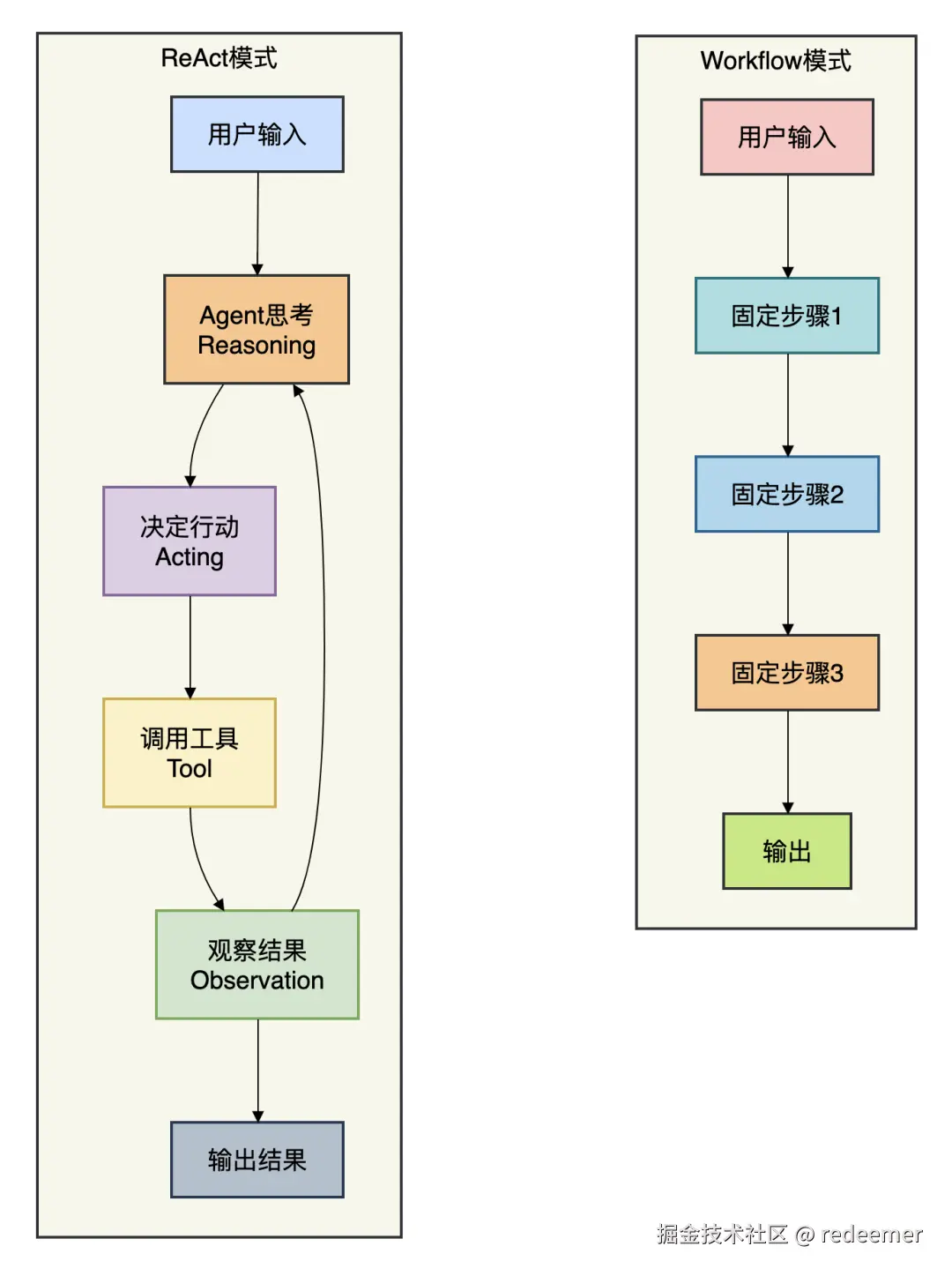 Workflow模式下,开发者需要提前把每一步写死——先查数据库、再调API、最后组装返回。这就像给AI戴上“镣铐”,当业务逻辑变复杂时,维护成本激增,而且无法享受大模型持续进化带来的能力提升。