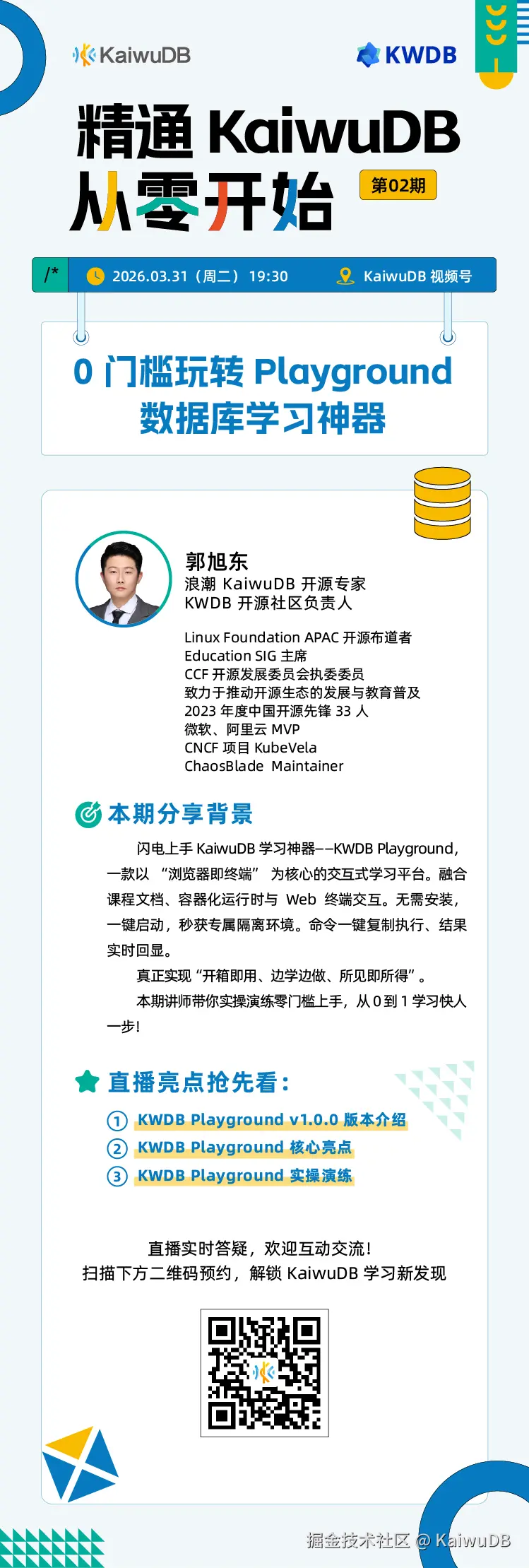 KaiwuDB 资深专家将带你全面解锁这款"开箱即用、边学边练"的KaiwuDB 数据库学习神器!