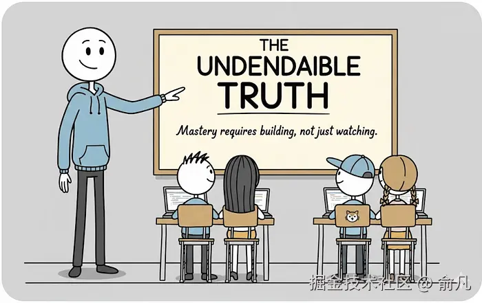 你刷完了无数视频教程,上完了一堆在线课程,手机里估计还存了一堆电子书。感觉自己学到了东西,可一旦面对空白的 VS Code 窗口或者真实开发挑战,大脑就一片空白。