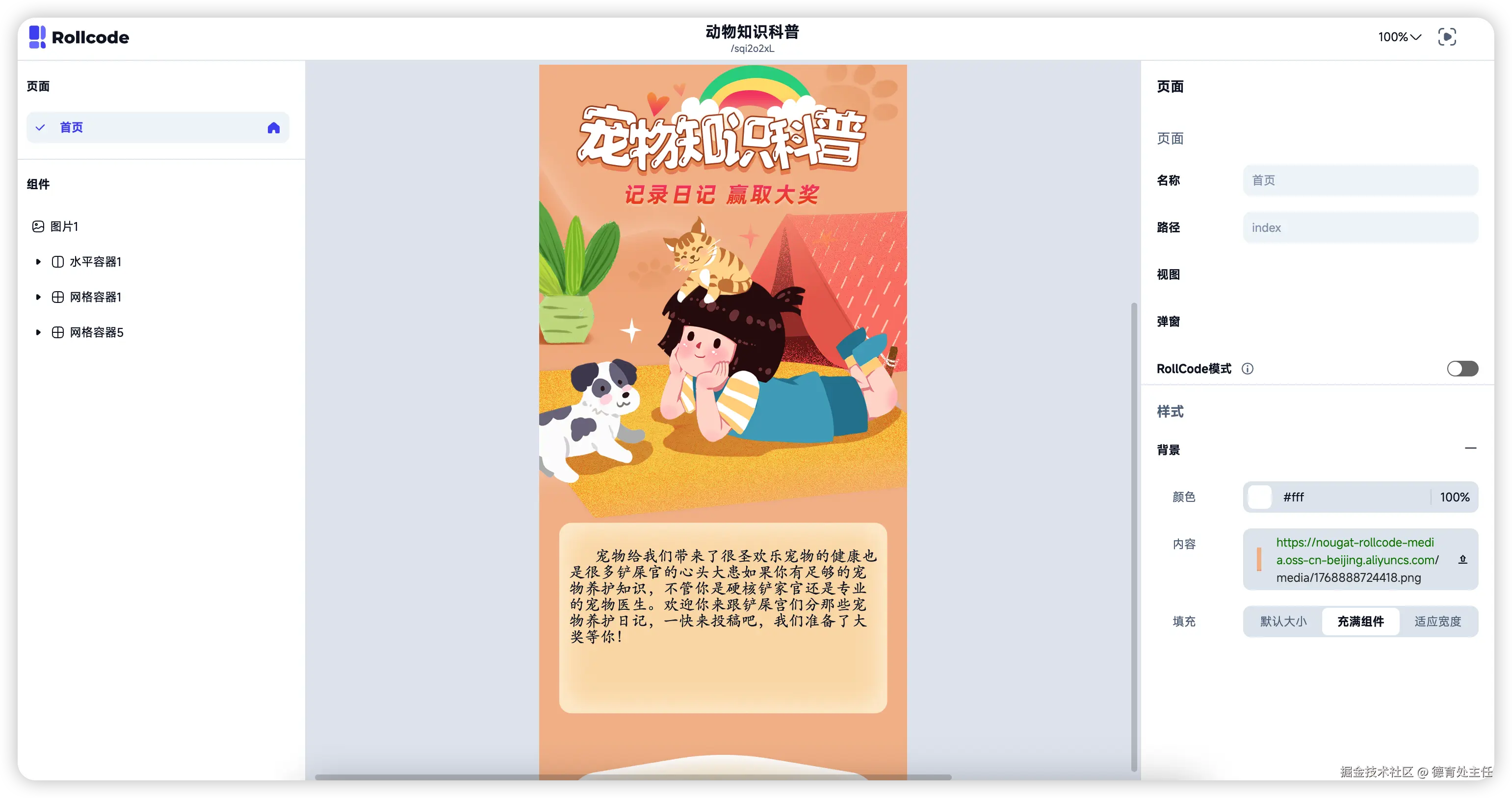 RollCode 的核心不是 “拖拽搭建有多快”,而是具备企业级的工程能力,它将可视化搭建、前端自定义开发、模板复用、静态发布和资源管理深度整合,形成了一套完整的页面生产链路。从组件库设计到最终上线,每一个环节都兼顾了运营的易用性和开发者的扩展性,真正实现了 “效率与定制的平衡”。