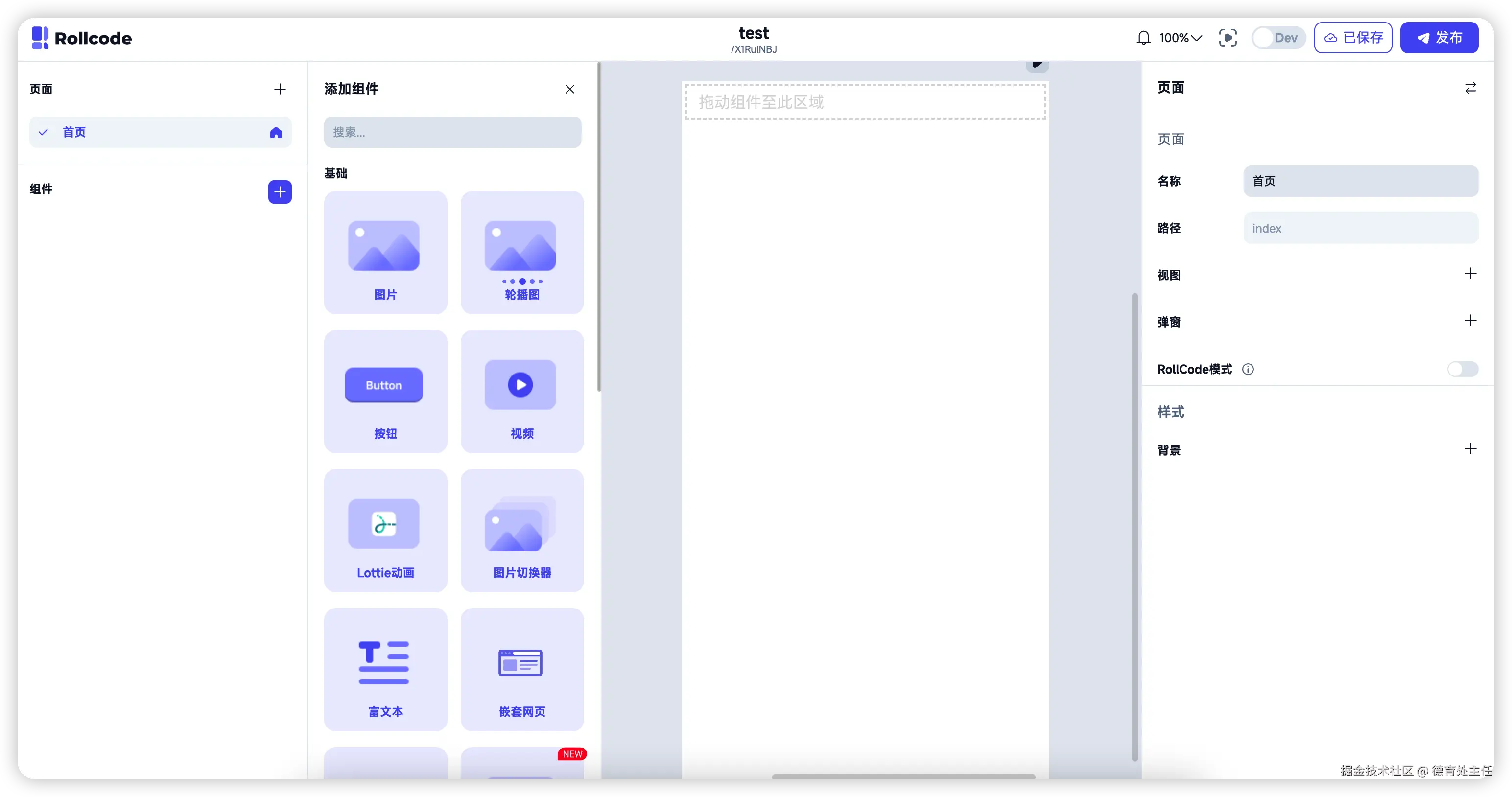 低代码的核心价值不是 “替代代码”,而是 “减少重复代码”。RollCode 最核心的设计亮点,就是实现了可视化搭建与前端自定义开发的无缝衔接,解决了传统低代码 “代码不可控、扩展难” 的问题,让运营和前端能各司其职: