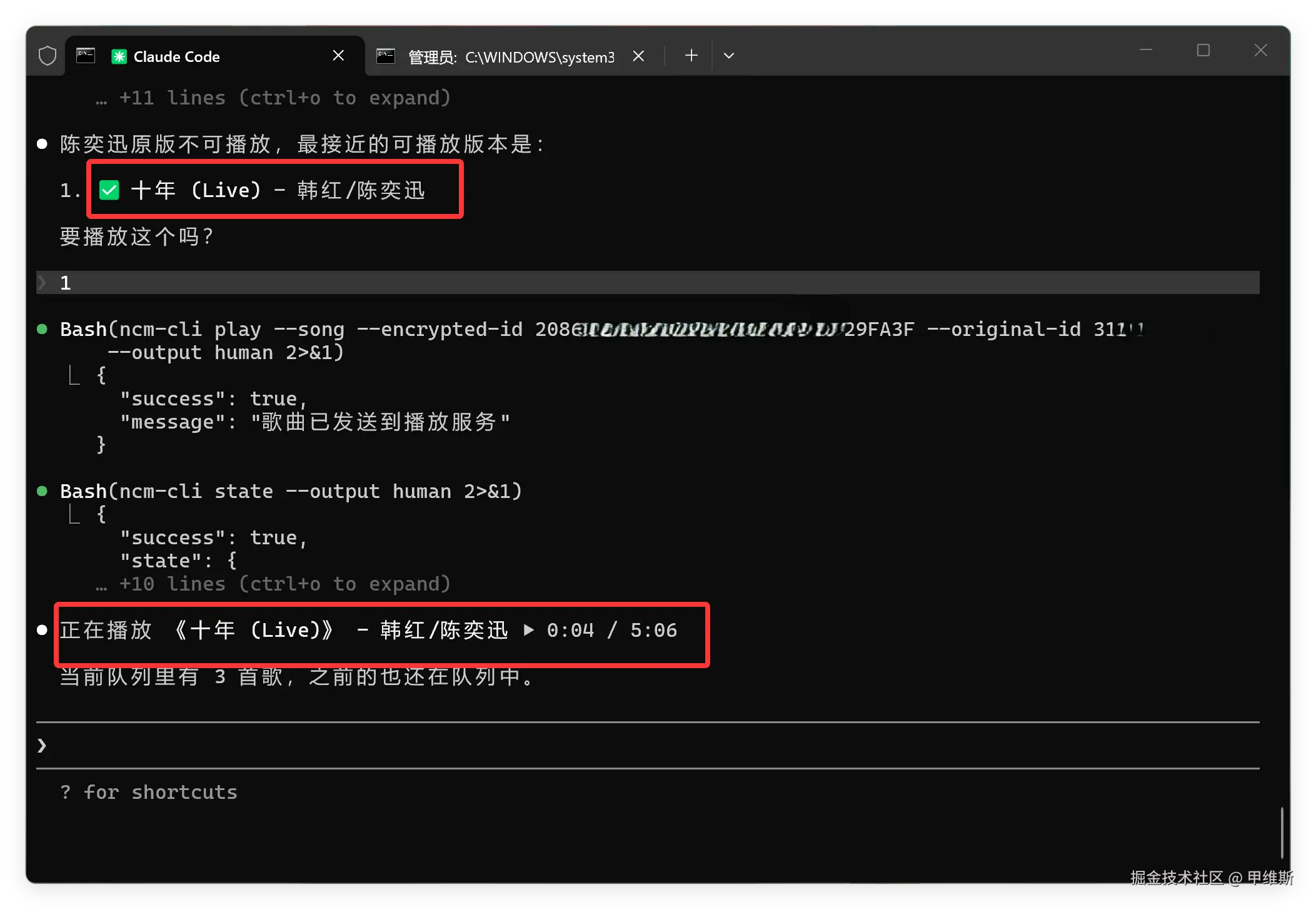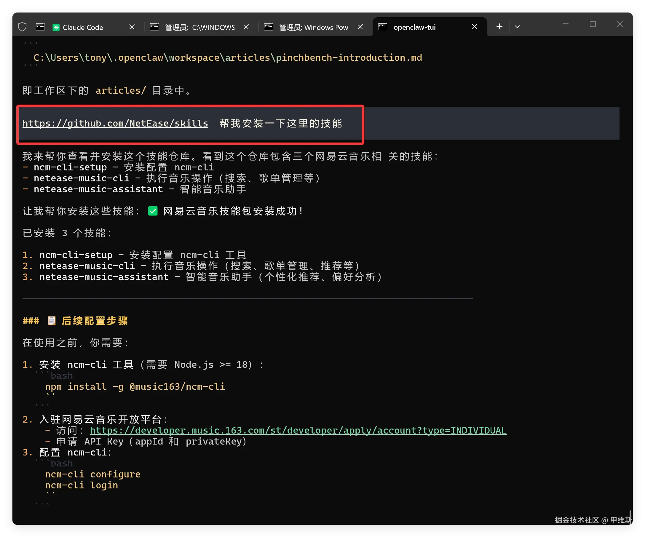 原理就是把网易云技能拷贝到 Claude Code 的技能目录下。