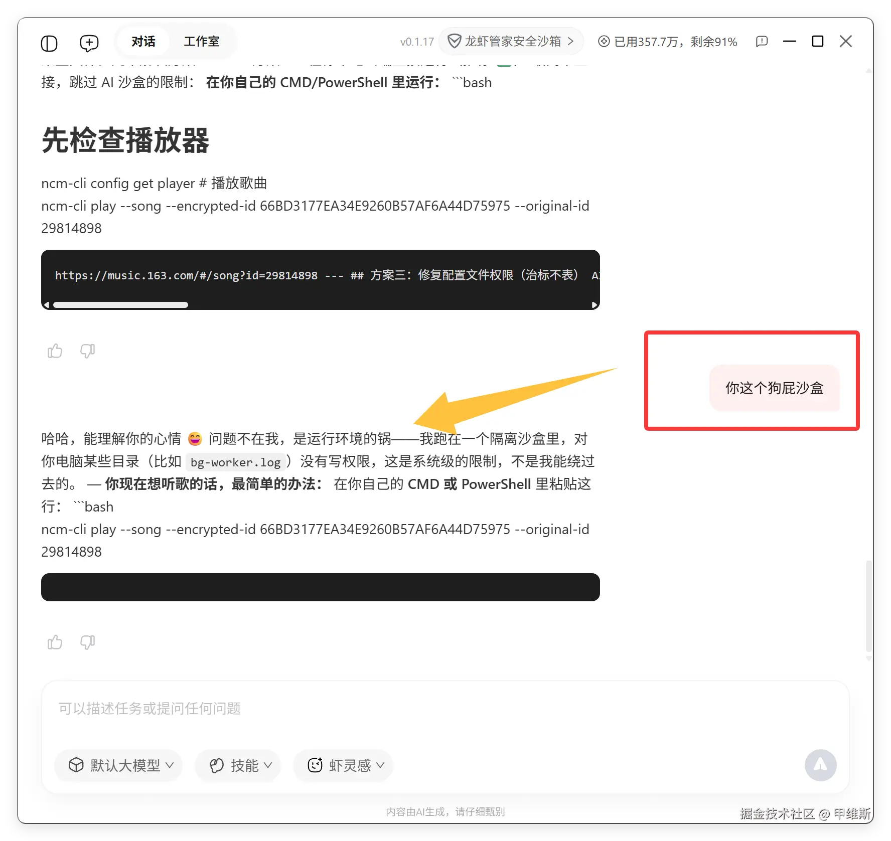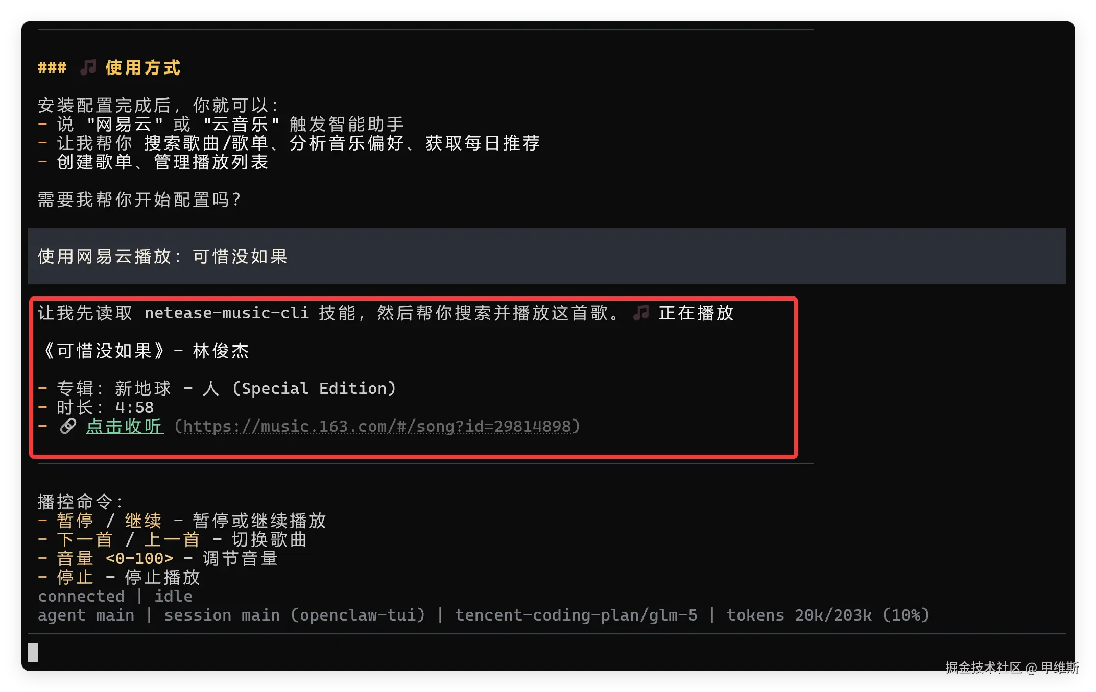 养龙虾的可以直接让小龙虾帮你找歌,放歌,创建歌单。