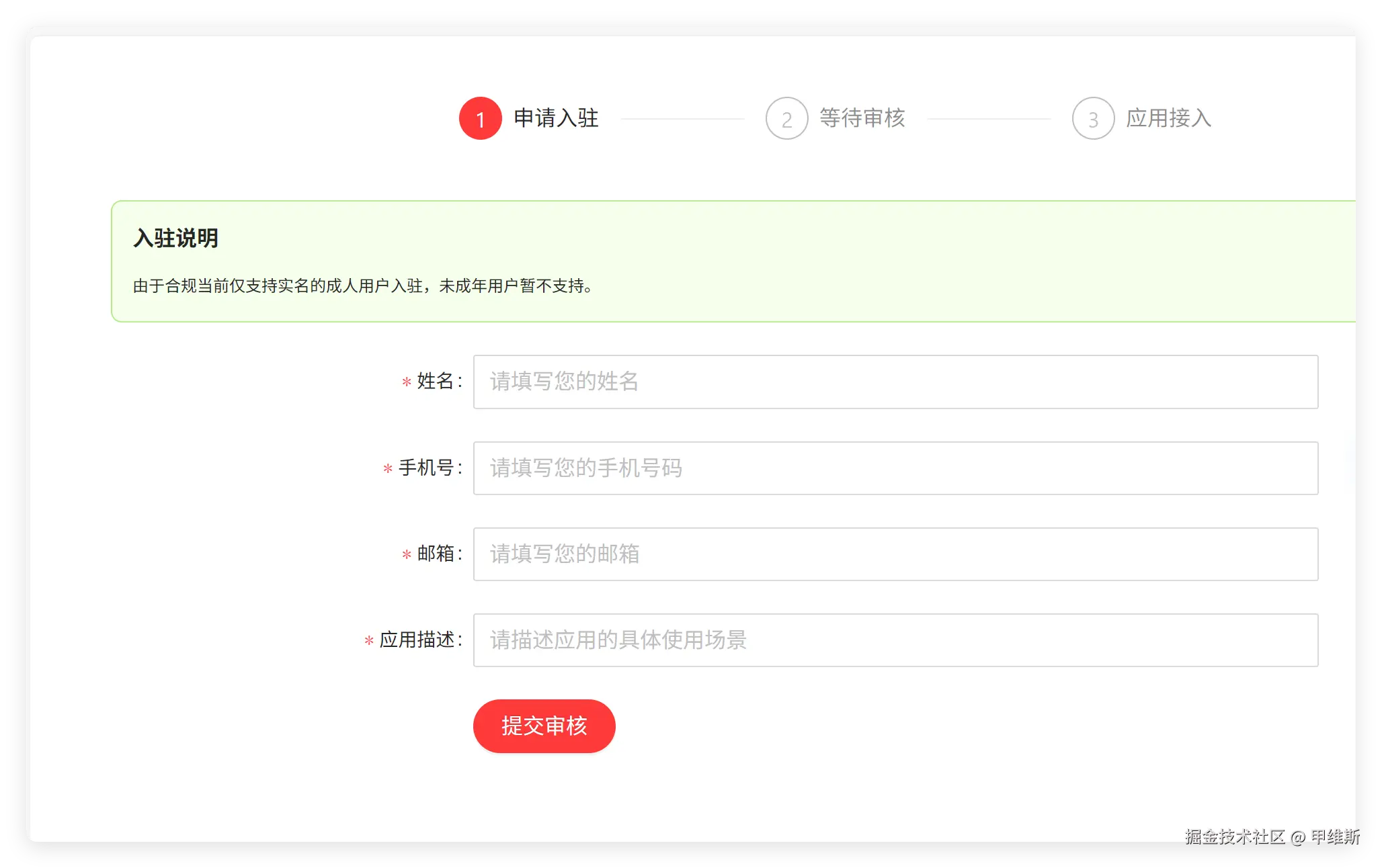根据指引填写相关信息,做两次身份认证,然后初始化应用,进入应用,获取 App ID 和 Private Key。