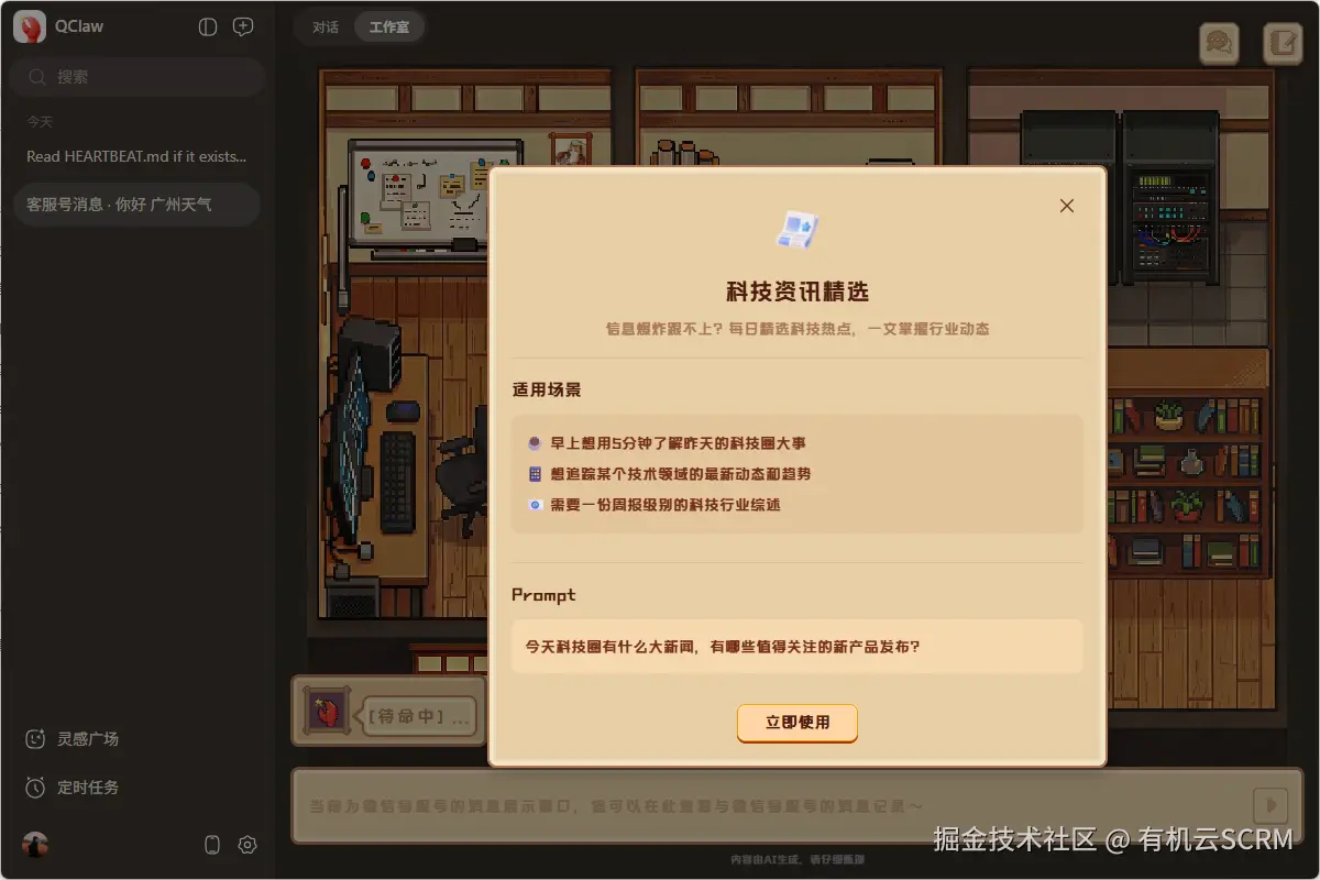 QClaw 迎来 v0.1.17 版本更新,本次升级在工作室联动、底层记忆能力、Skills体系与界面交互上实现关键突破,同时完成多项稳定性优化与bug修复,为用户带来更智能、更流畅的AI协作体验。