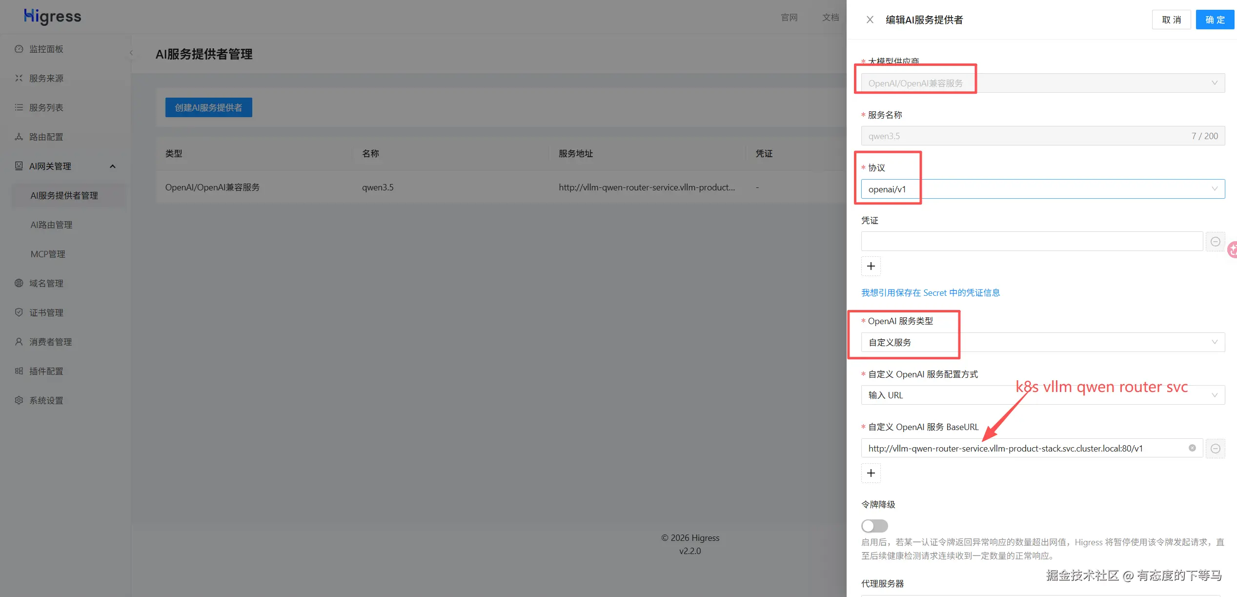 ② 配置LLLM AI Provider,这个就类比nginx upstream svc