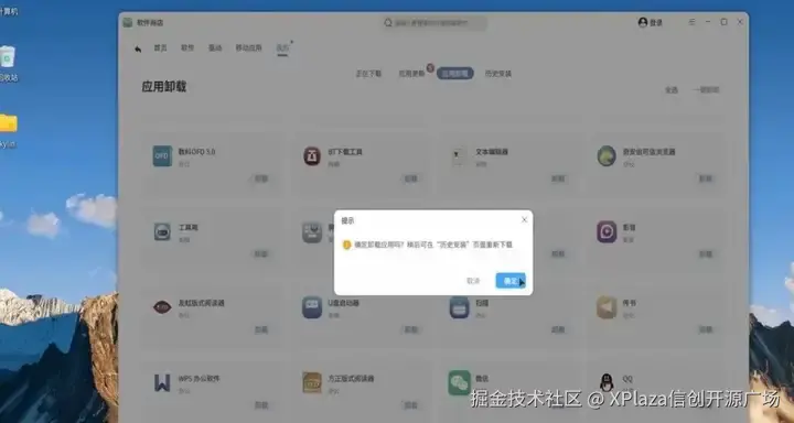 打开【软件商店】,找到【我的】-【应用卸载】,点击需要卸载软件旁边的【卸载】即可完成软件卸载。