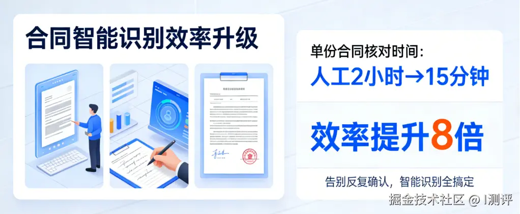 ·核心亮点:彻底解决了扫描件、手写件、盖章件的识别难题,不用再反复和业务方、合作方确认内容,单份合同的核对时间从人工 2 小时压缩到 15 分钟,效率提升 8 倍。