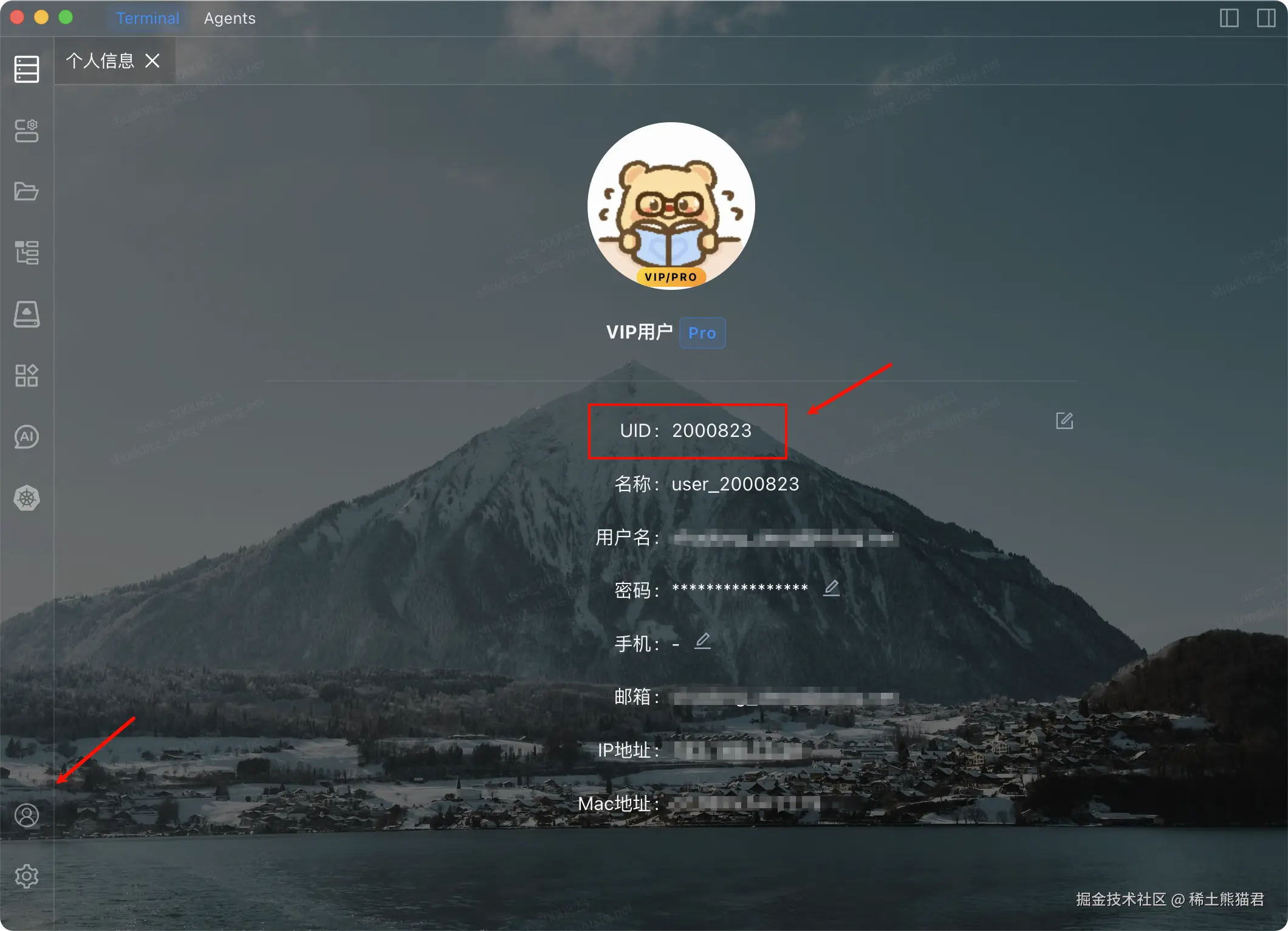 打开 用户配置 → 个人信息,复制 UID(位置可参考下图)。