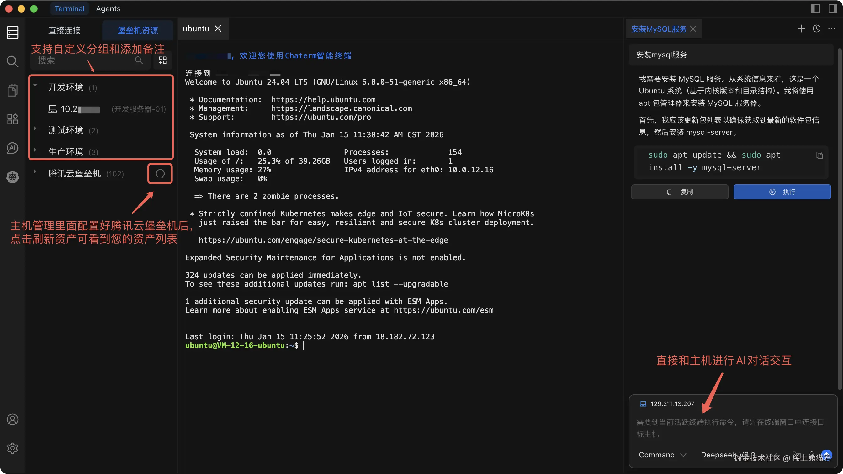在服务器上忘了某条命令,翻 history 翻了半天没找到?碰到不熟的服务,手册翻了 N 遍还是不知道怎么操作。服务出了报错,一点一点地去抠日志,再通过 AI 或者搜索引擎排查问题。这是每个要跟服务器打交道的程序员每天都会碰到的日常问题。