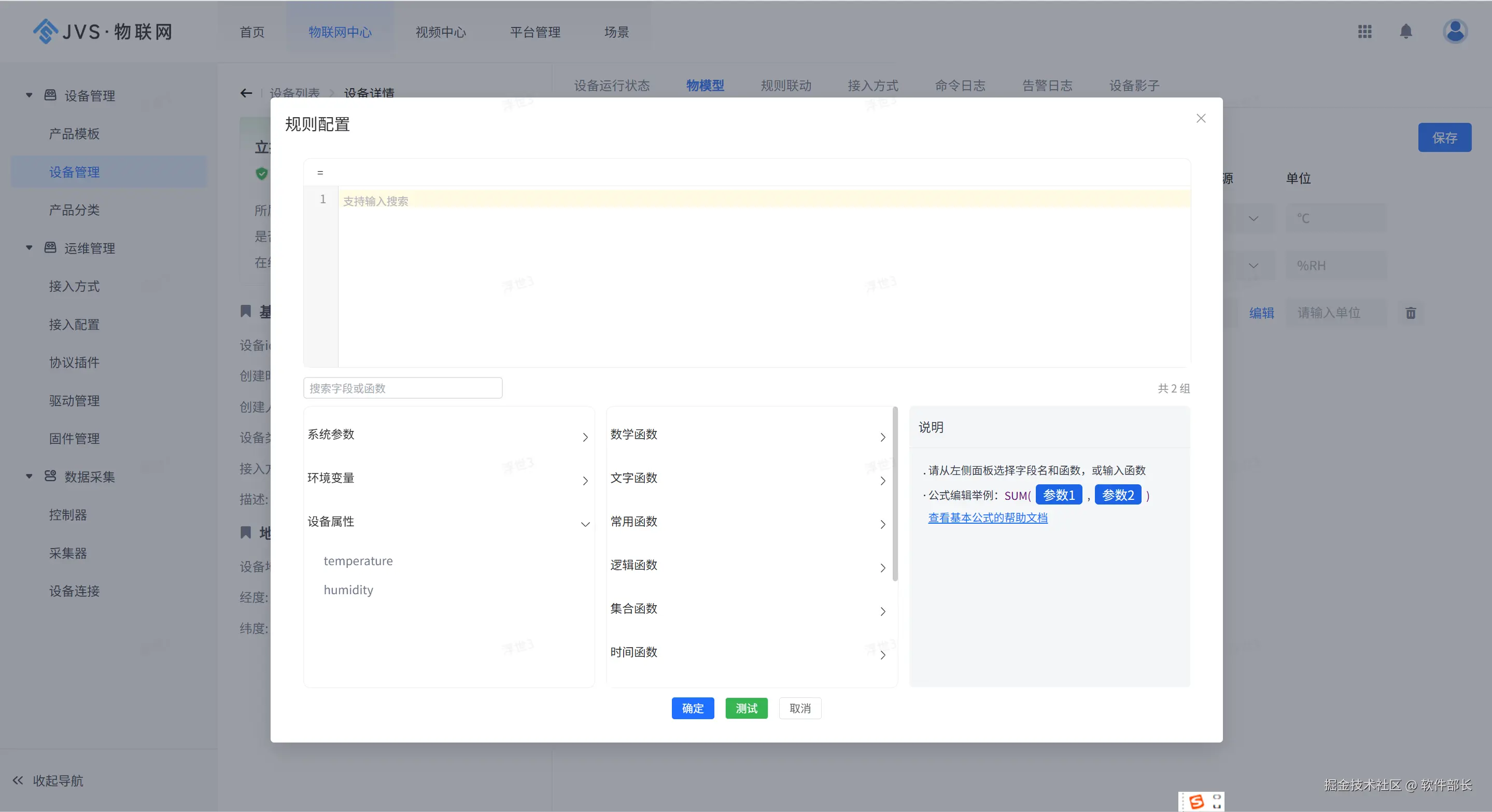 2、优化物模型中属性的数据来源,可以来源设备上报、可以通过公式转换,可以通过手动规则生成,针对物模型中的属性设置,优化了通过公式配置 转换数据 后作为新的属性。