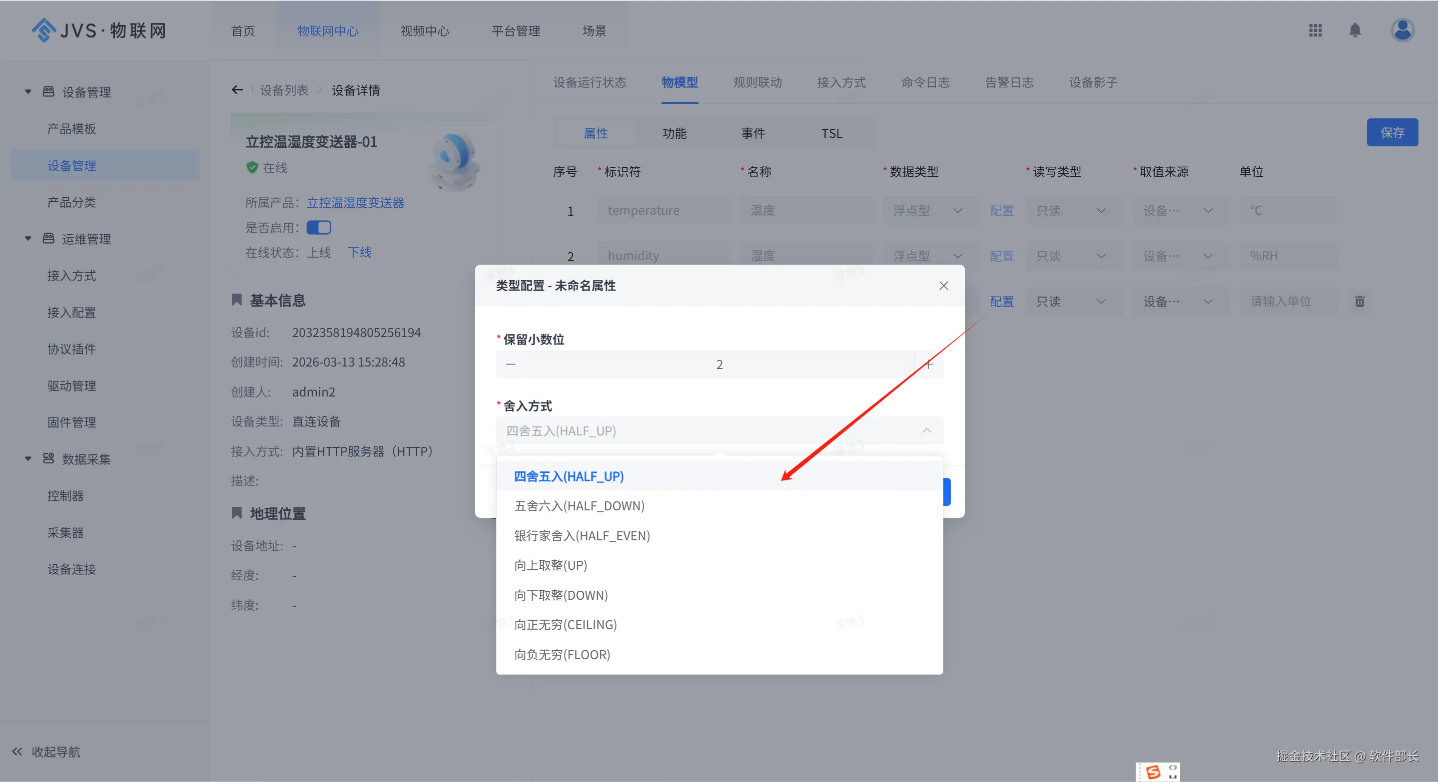 3、针对设备属性的具体数值进行格式化配置: