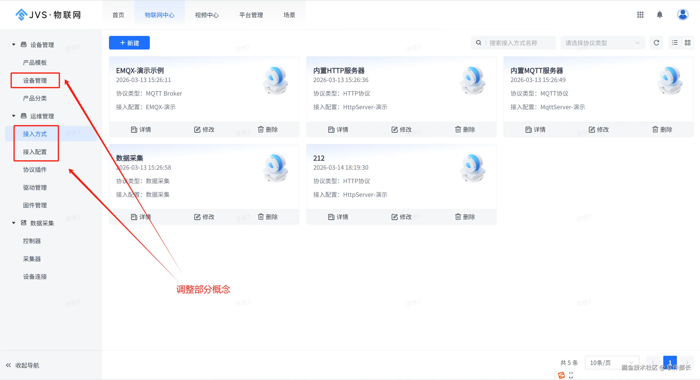 1、调整了一部分概念,让用户理解相对更加容易,例如:产品-->产品模板, 设备-->设备管理, 接入方式、接入配置等