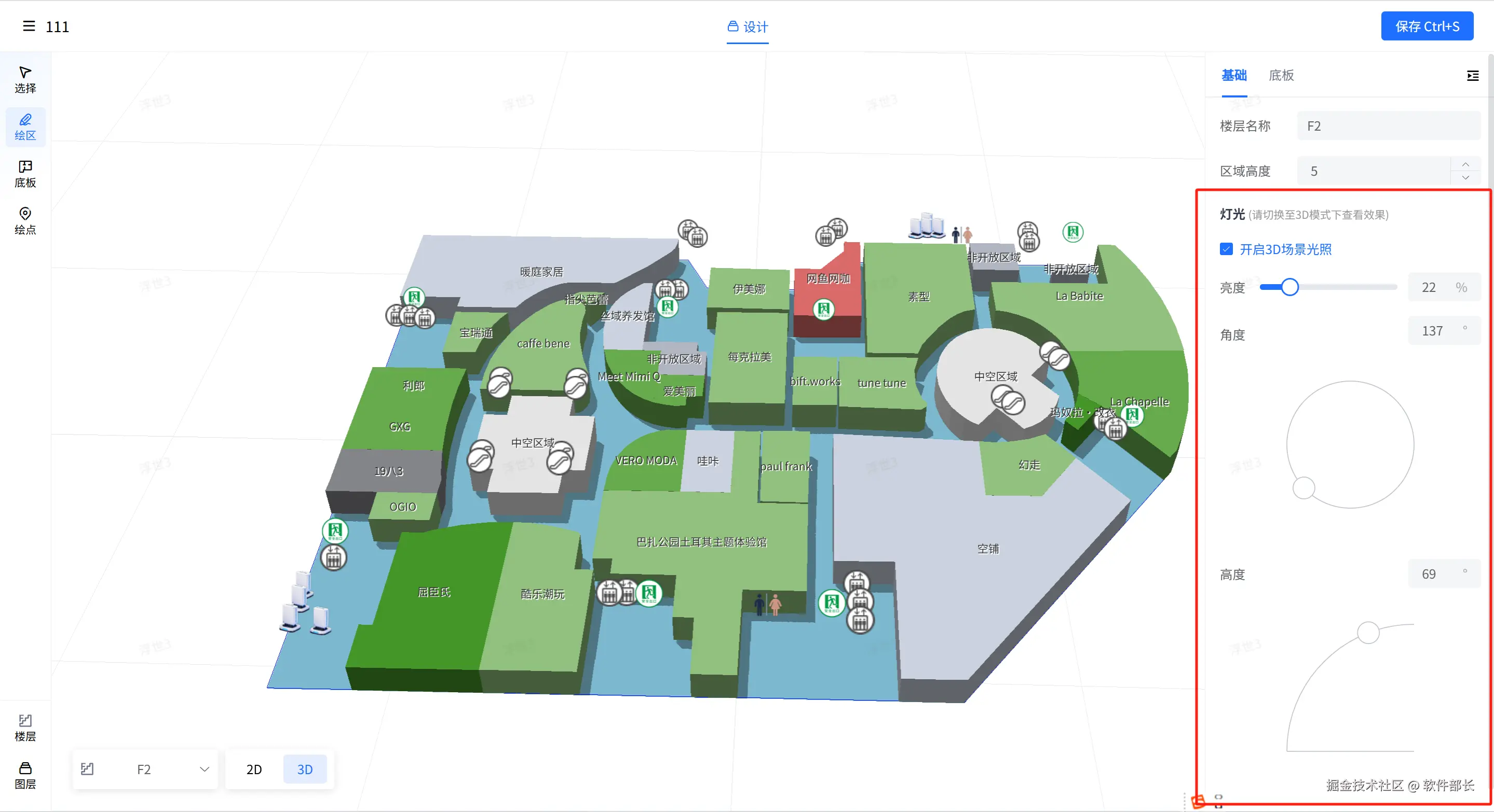 4、物联网场景中,3D效果增加光照相关的配置,可设置光照强度、角度等。