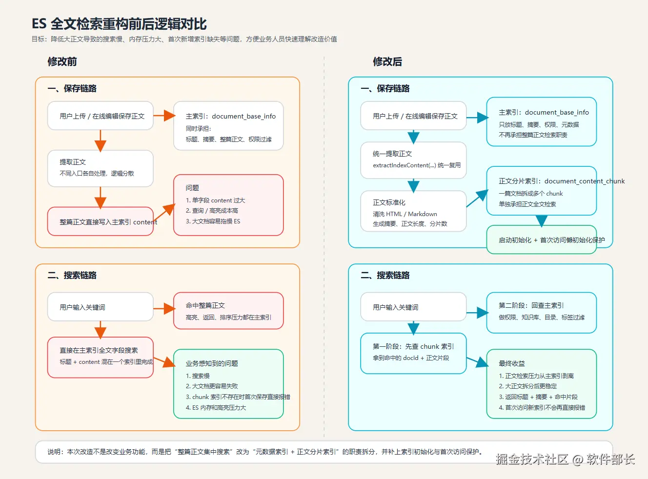 1、优化全文检索逻辑,降低大正文导致的搜索慢、内存压力大、首次新增索引缺失等问题,方便业务人员快速理解改造价值。