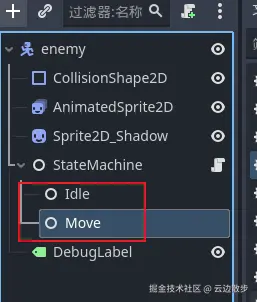 - 接着我们移除待机状态和移动状态的脚本,另外把这个移动状态重命名为Move