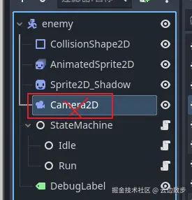 - 删除 2D 相机节点(敌人不需要跟随视角)