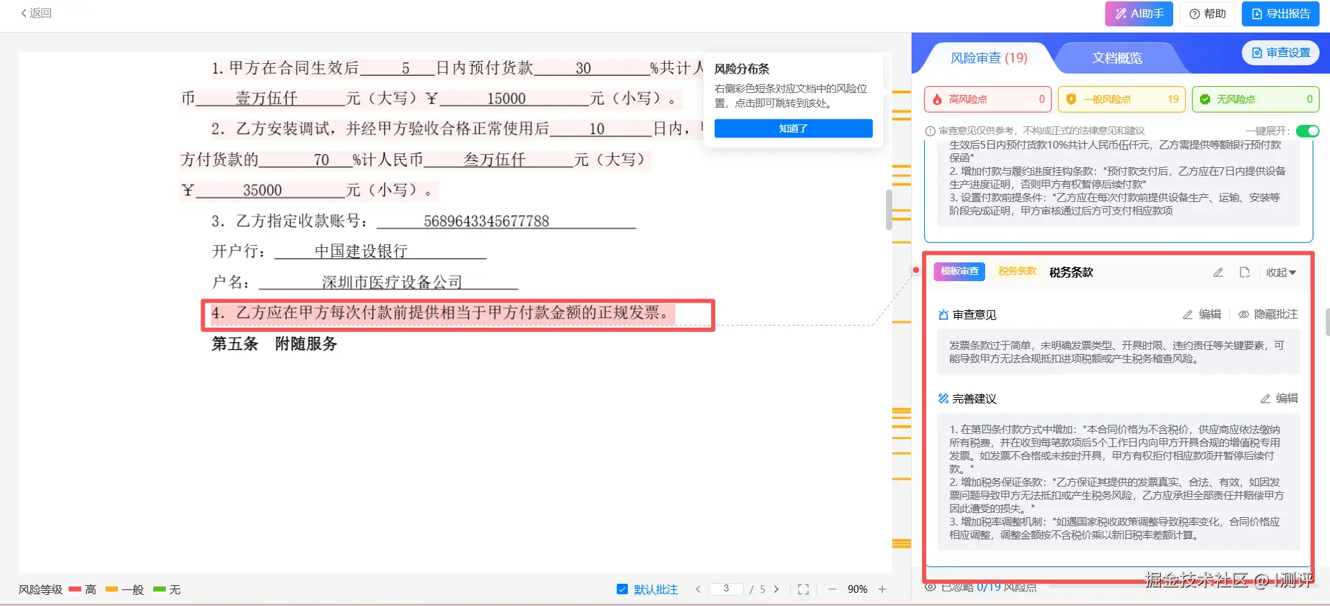 二、核心能力实测:3 分钟完成全量审查,风险识别比人工更细致
