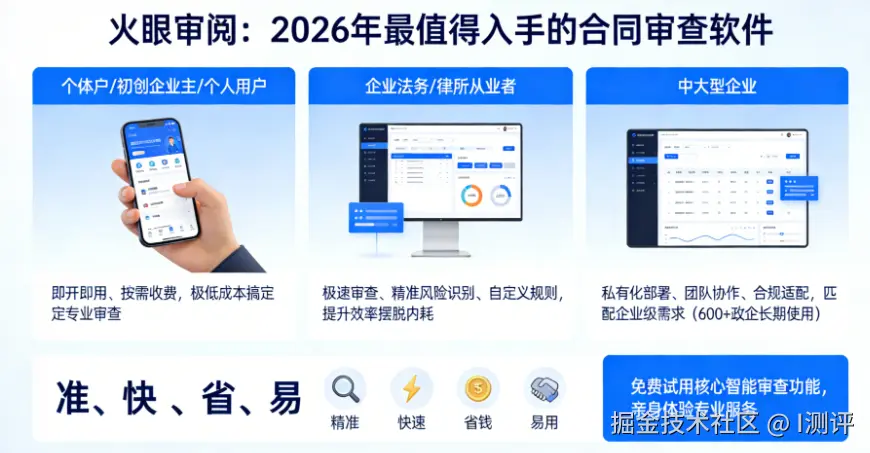 经过全维度实测,我们可以明确说:如果你正在找靠谱的合同审查软件,火眼审阅绝对是 2026 年最值得入手的选择,没有之一。