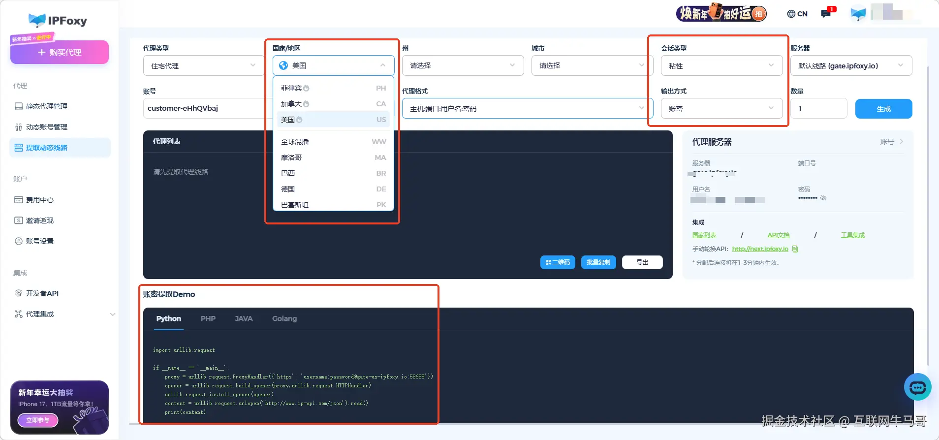 下面是一个基础的Python代理配置示例: