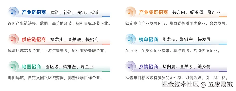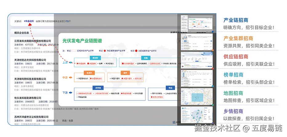 传统做法多依赖于行业报告与局部调研,视野有限。而现代智慧招商,则强调依托大数据平台进行全景式分析。例如,通过“五度易链”产业精准招商平台,可以系统性完成以下工作: