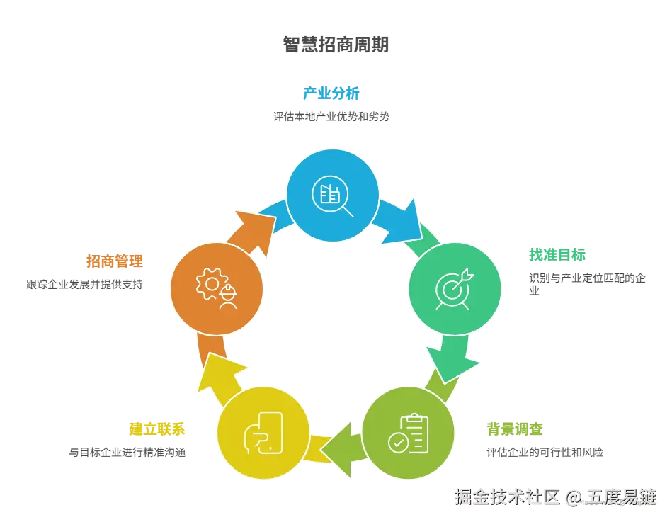 “五度易链”「智慧招商」产业精准招商平台,正通过全量产业大数据与人工智能技术,重构产业招商的核心流程,推动招商工作从“地毯式”推销向“狙击式”选商演进。本文将系统解构一个完整、高效的现代产业招商闭环流程,为从业者提供一份清晰的“作战地图”。