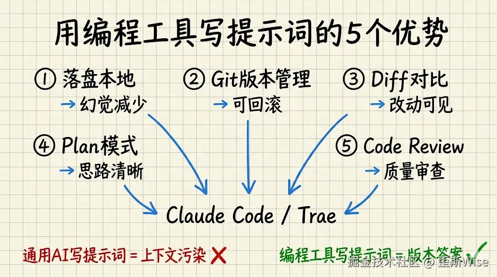 但用 Claude Code / Trae 这些编程工具写提示词,完全是另一种体验: