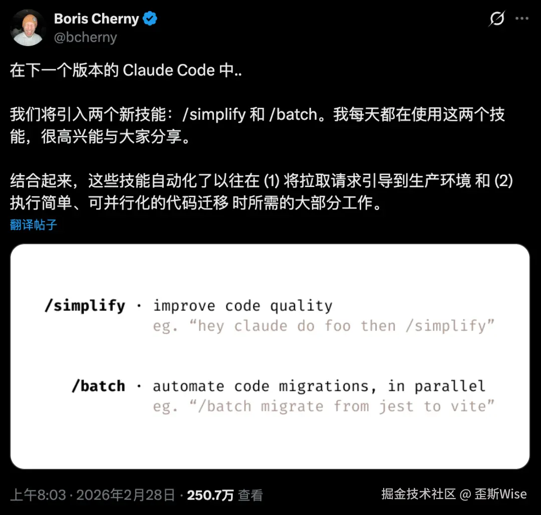 例如Claude Code 的 simplify 功能,本质上是在审查代码质量,但我们也可以用它来审查提示词质量。