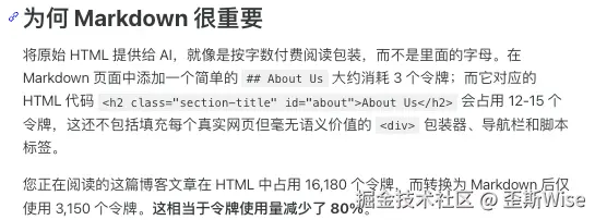 海外的云服务商巨头 Cloudflare 在 2 月份推出了 Markdown for Agent,它的核心作用是把HTML转换成Markdown,因为原始的 HTML 充斥着大量的脏数据,很多的代码是为了人类的上限所设计的。