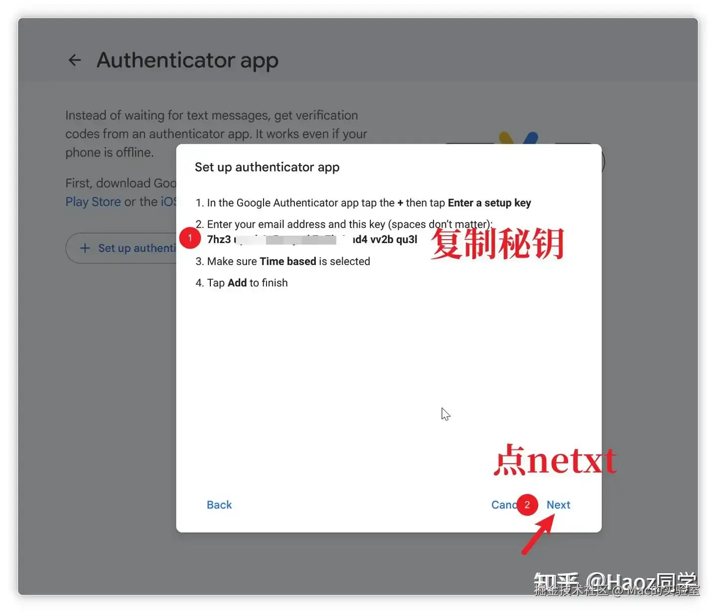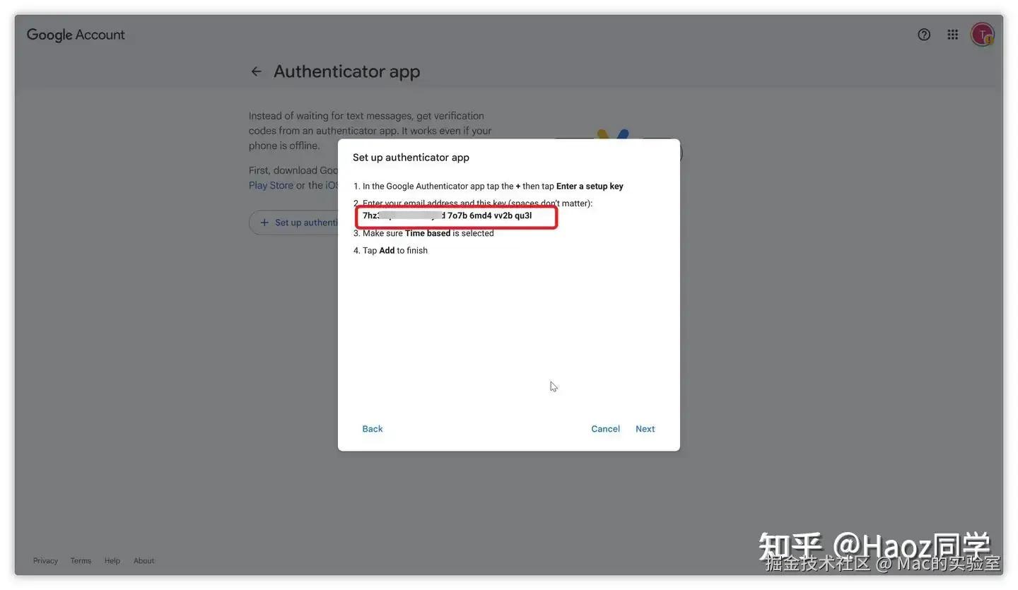 - 回到 "安全性" → "两步验证" → "身份验证器"