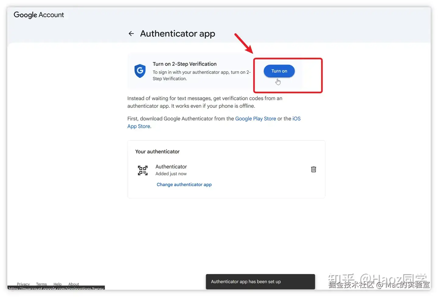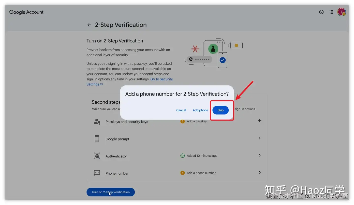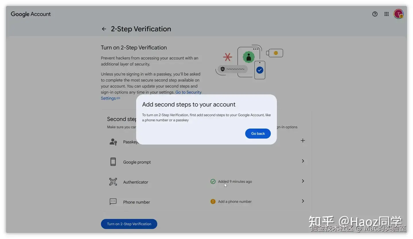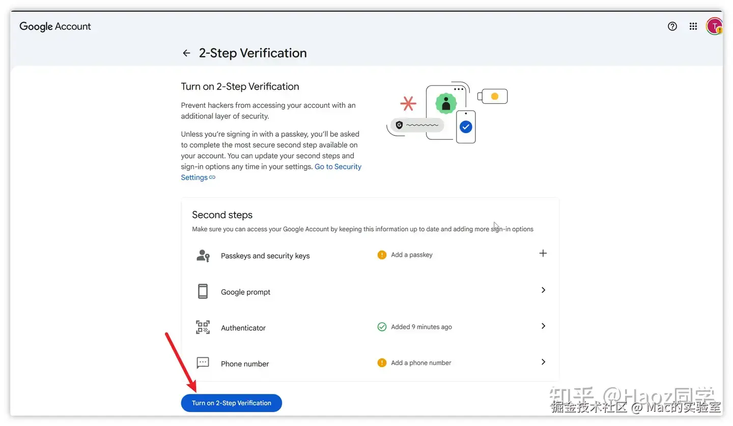 刷新页面后,再重新点一下底部的Turn on 2-Step verification