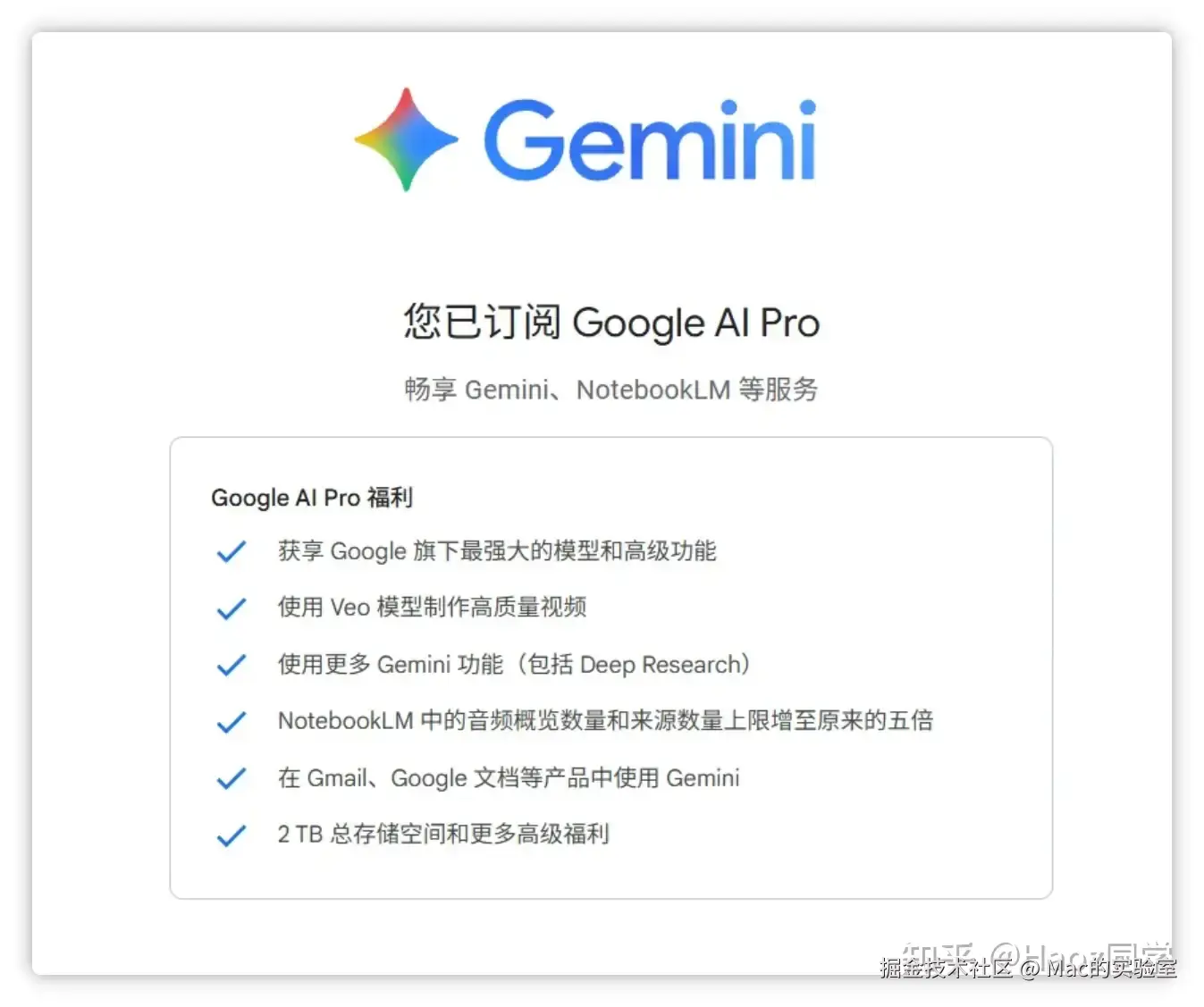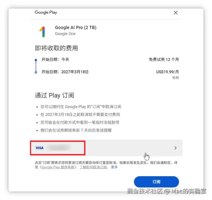 - 找到刚开通的 Google One (AI Pro) 订阅