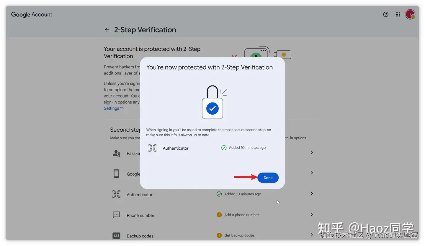 回到谷歌完成2FA绑定