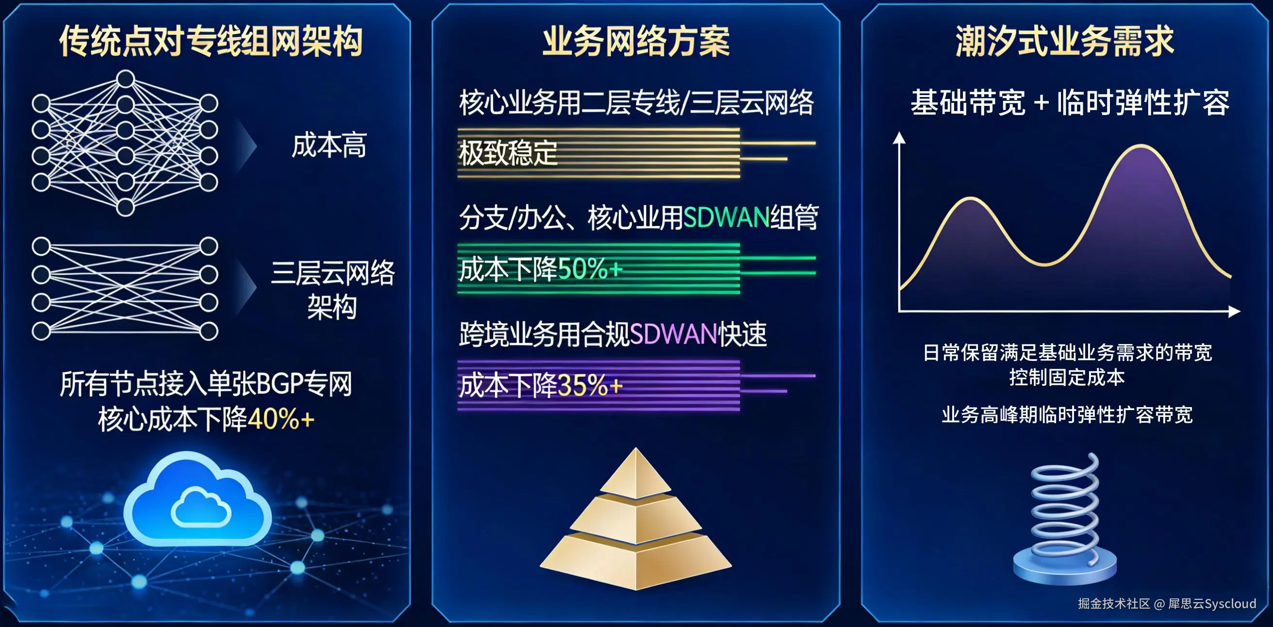 - 采用三层云网络替代传统多条点对点专线,专线成本直接下降 42%;