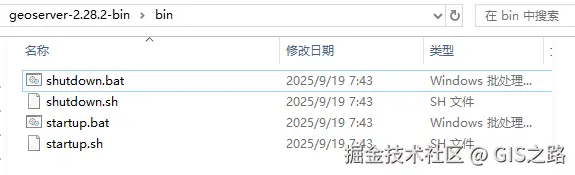 打开bin目录,里面有.sh和.bat两种文件类型。其中.sh为linux启停脚本,.bat为为windows启停脚本。在运行时请确保脚本具有相应执行权限。