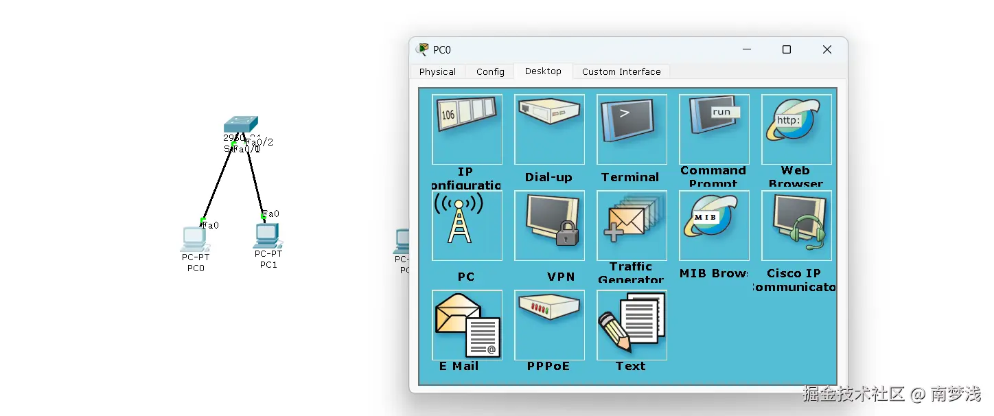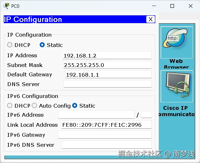 编辑单机PC0也就是第一个PC,显示这个图片,第一个图片是配置IP的地方
