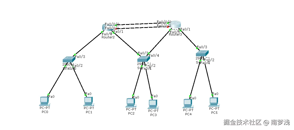 在两个路由器中加一条线,毕竟看到这这种基本操作我就不赘述了