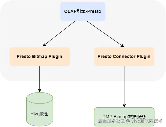 **Presto计算层:**在Presto服务,主要开发了Presto Bitmap相关的UDF Plugin,Presto Connector获取DMP平台标签,通过Presto源码改造实现 Select In Bitmap能力。 进行上述改造后,计算层就可以通过统一的SQL实现各种服务。