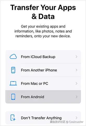 第 2 步:进入“传输您的应用和数据”页面,然后选择“从Android ”。
