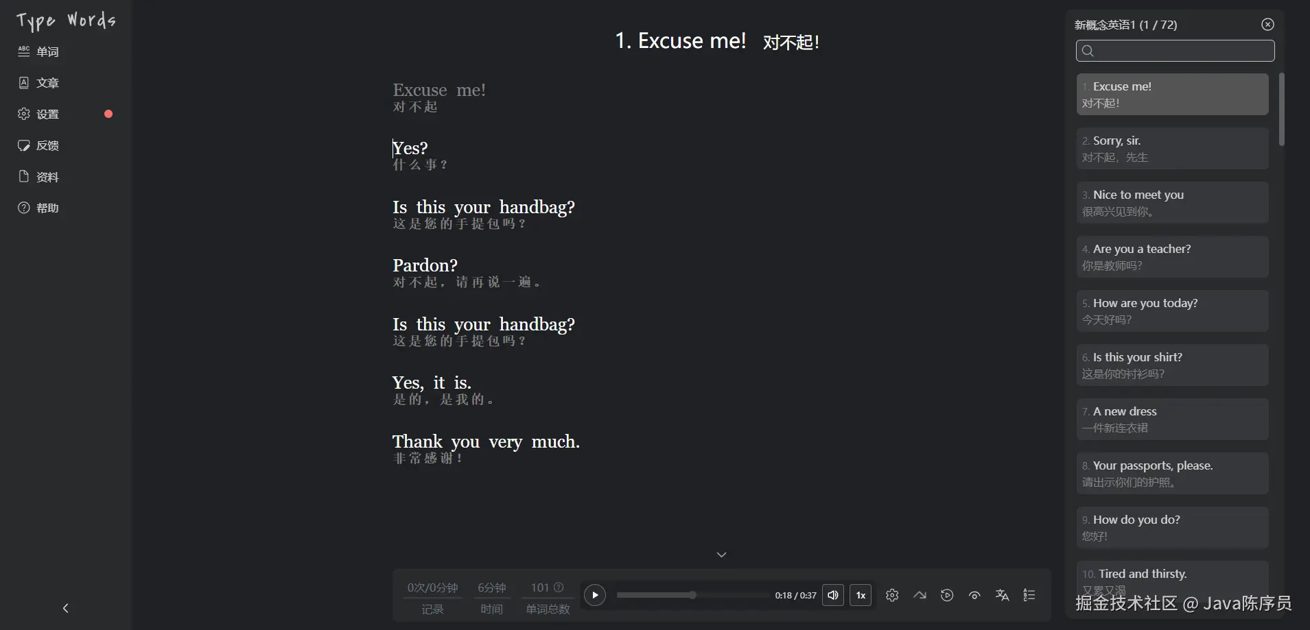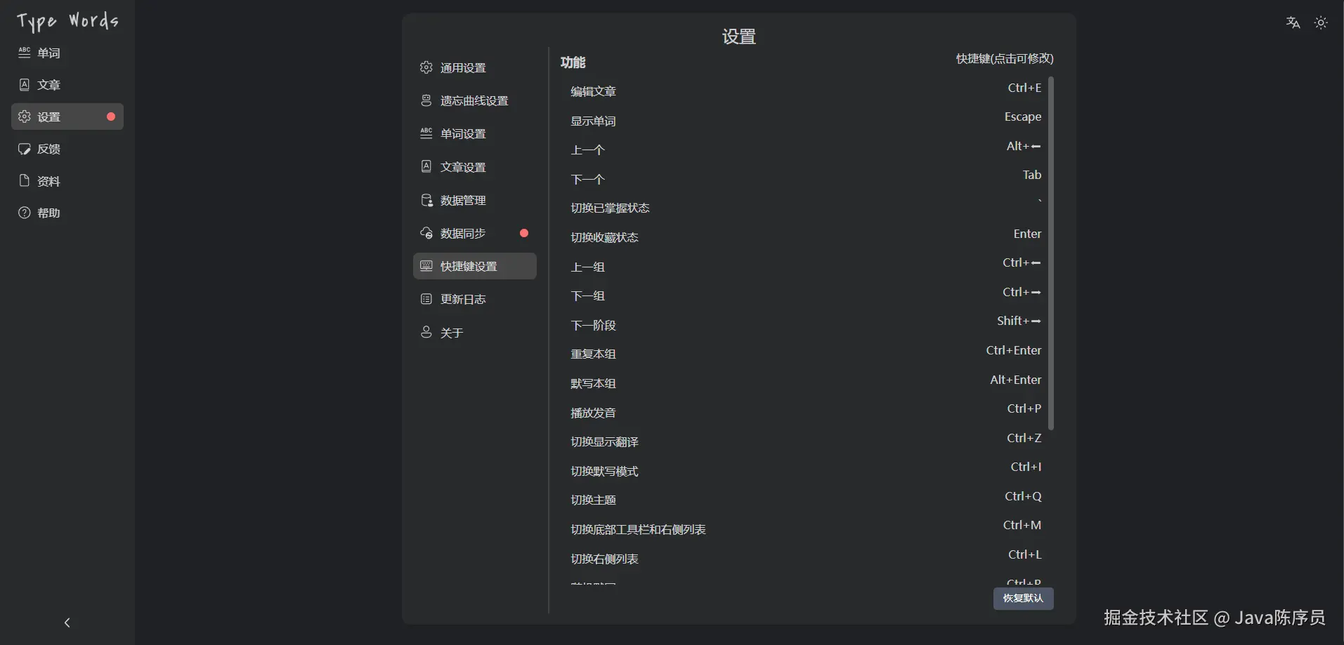 TypeWords —— 一款开源的单词与文章练习工具,使用按键输入的方式学习英语,通过更智能的记忆方式实现高效学习,界面简洁且功能丰富。