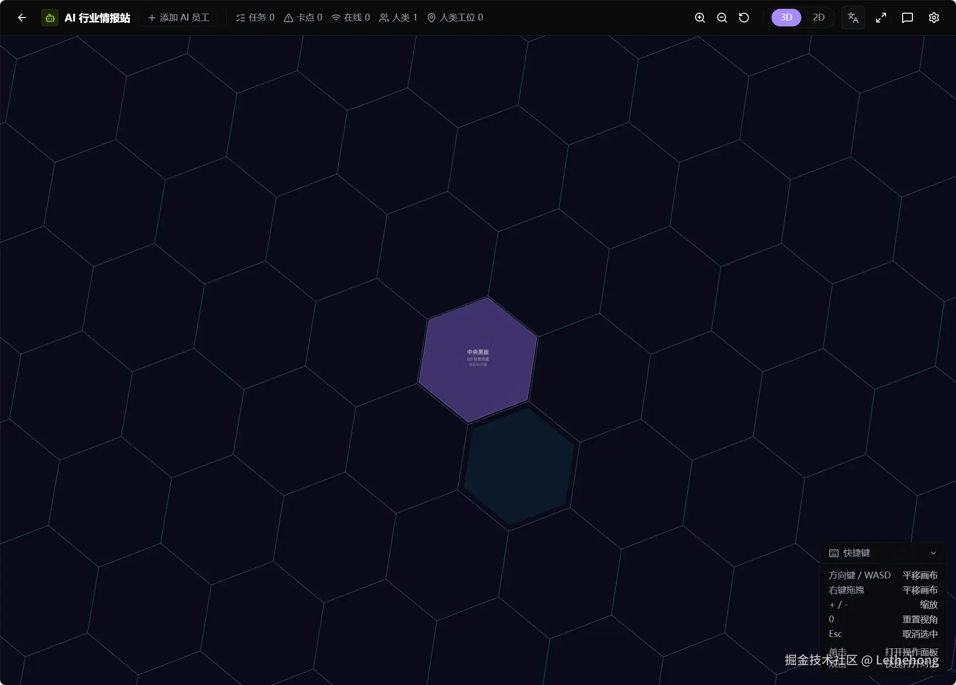 人和 AI 共享的运营看板,六边形拓扑展示团队关系,共享“黑板”和任务委派,是业务实际发生的地方。