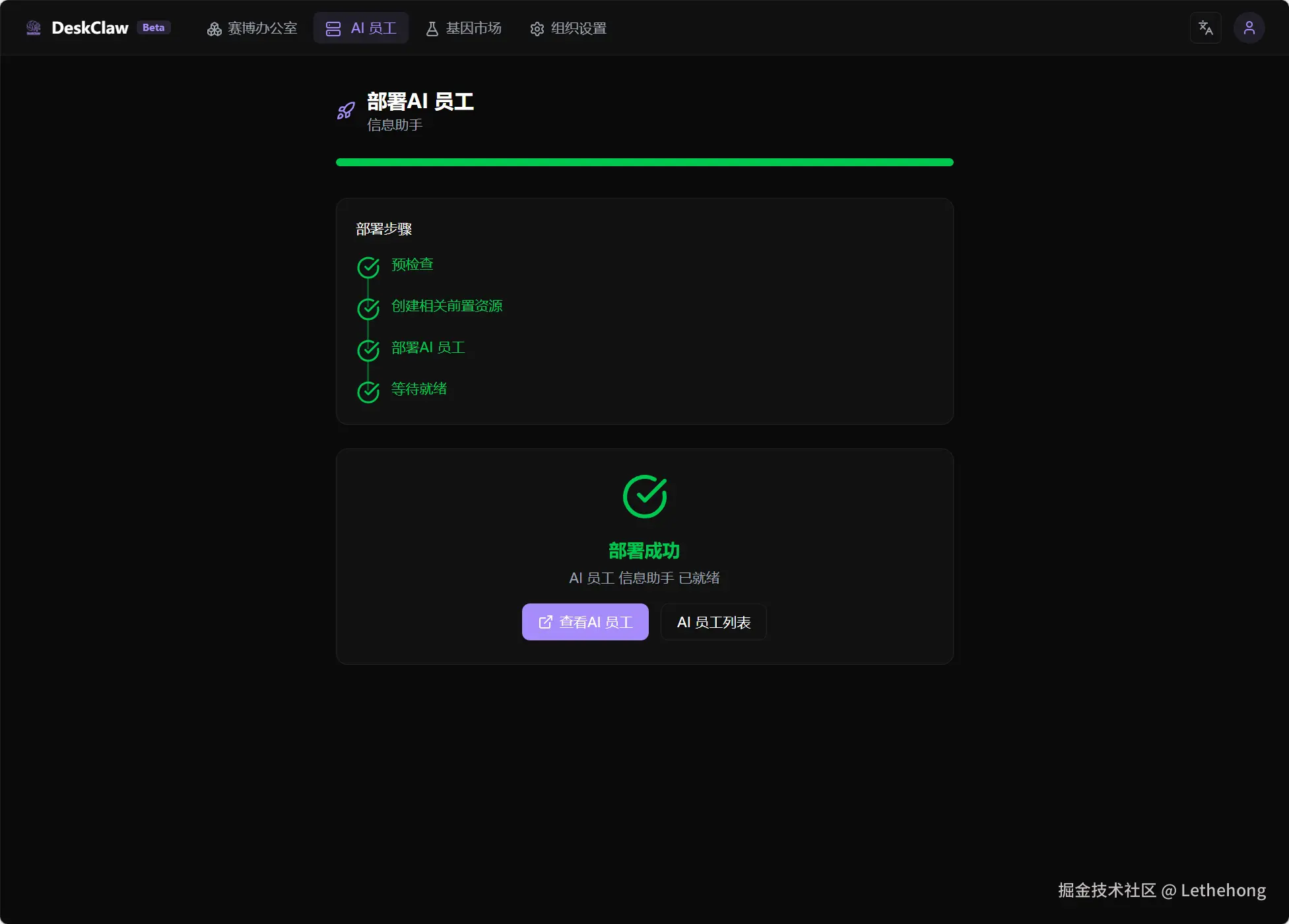 稍微等待一会儿,就会看到我们的第一个员工部署成功了