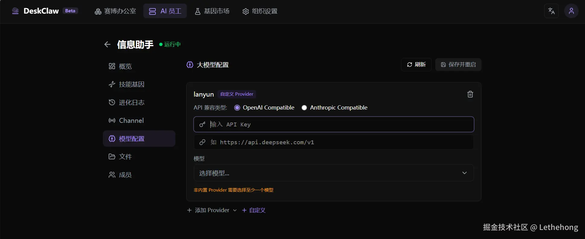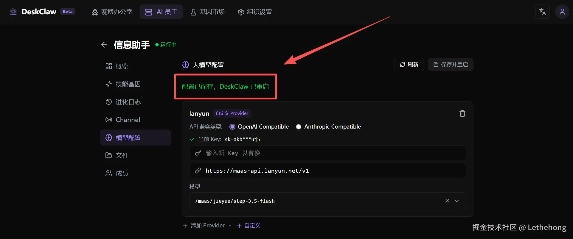 选择你的模型服务商(如 蓝耘MaaS)。