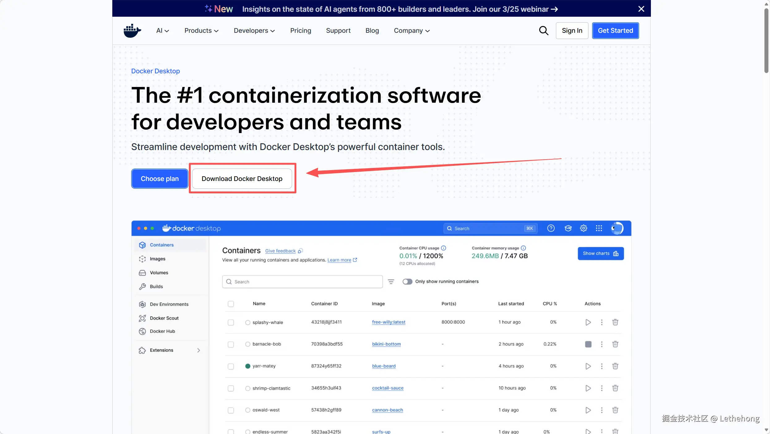 - 下载安装包 访问 Docker 官网下载页面:www.docker.com/products/do… 点击“Download for Windows”下载安装程序。
