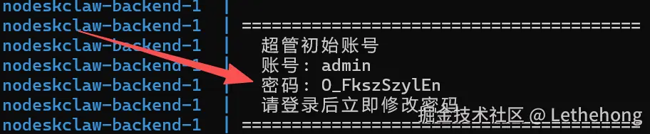 服务启动后,查看日志获取管理员账号:
